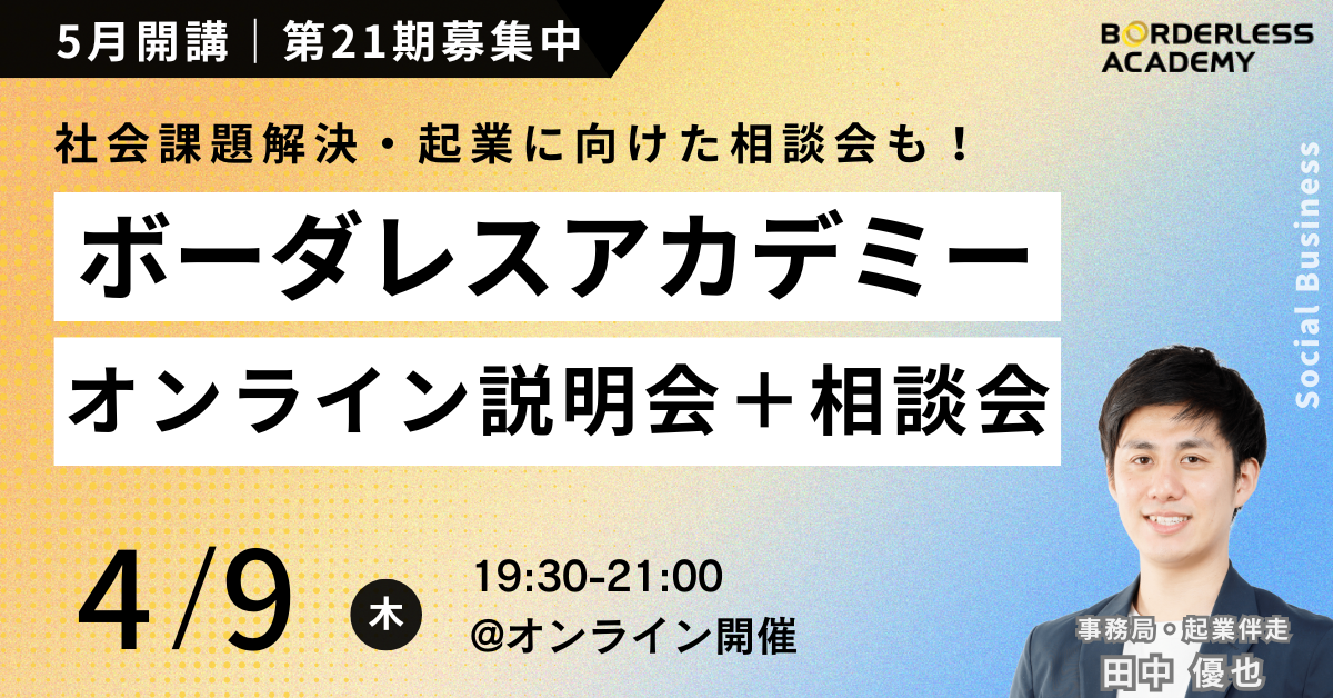 「9割の社会問題はビジネスで解決できる」の実践編をアカデミーで始めよう