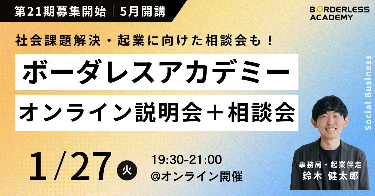 「9割の社会問題はビジネスで解決できる」の実践編をアカデミーで始めよう