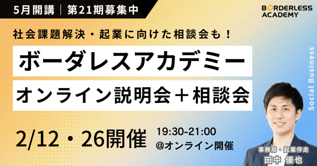 【先着30名】早期申込キャンペーン!※2/28最終〆切 | ボーダレスアカデミー | 社会起業のためのソーシャルビジネススクール