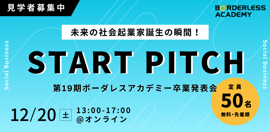 儲けを追求するビジネスではなく、社会問題解決のためのビジネスの作り方を。世界13カ国で50のソーシャルビジネスを展開するボーダレス・ジャパンのノウハウをベースに、アカデミーがこれまでの伴走経験から蓄積した実践知を毎期バージョンアップしてお届け。